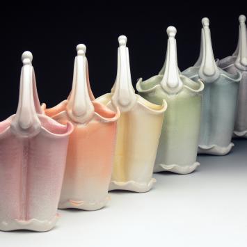 I seek to enhance the experience of interacting with functional objects. I work toward creating a sense of elegance for the user while in contact with each porcelain piece. Reminiscent of orchids, flowing dresses, and the body, the work has a sense of familiarity and preciousness.